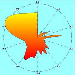 A quick visual image of the tomato sauce aroma pattern is supplied by plotting frequency vs. time on a polar scale. EST calls this approach VaporPrint imaging. (Source: Electronic Sensor Technology)