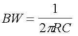The following relationship is used to calculate the bandwidth, BW, in Hz, of this RC circuit, for resistance in Ohms and capacitance in Farads: