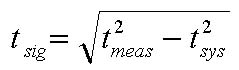 A knowledge of the risetime of each stage in a multi-stage, cascaded measurement can be used to estimate the composite risetime. The risetime of the composite system is the quadratic sum, i.e. the square root of the sum of the squares of the risetime of each element. For instance, the risetime of a signal shown on an oscilloscope screen, the measured risetime, includes the actual signal risetime as well as the risetime of the measurement system. It is possible, using the following relationship, to calculate the actual risetime of the signal, tsig, based on the measured risetime, tmeas, and a knowledge of the system risetime, tsys: