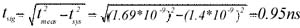 The risetime of the source with the probe and oscilloscope connected, tros, is: